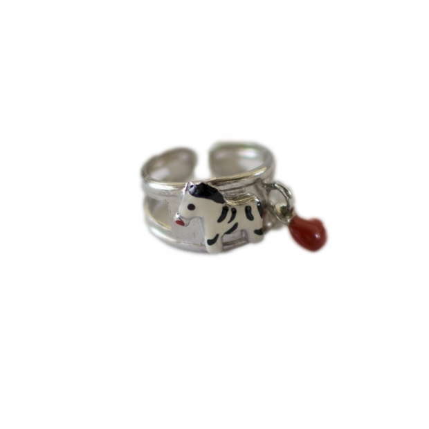 Ασημένιο 925 παιδικό δαχτυλιδάκι με ζέμπρα και καρδούλα απο χρωματιστό σμάλτο
