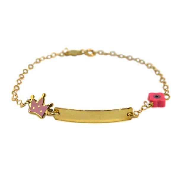 Χρυσή 14Κ παιδική ταυτότητα με σμάλτο και ματάκι
