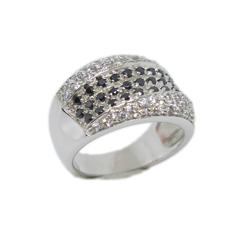 Λευκόχρυσο δαχτυλίδι 14Κ με άχρωμα και μαύρα κυβικά ζιργκόν