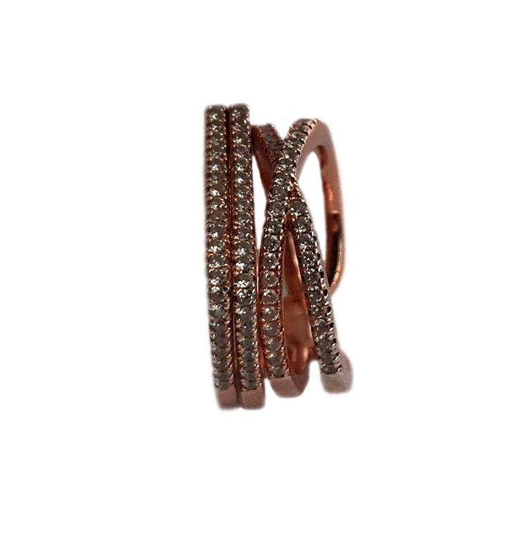 Ροζ επιχρυσωμένο ασημένιο 925 δαχτυλίδι με κυβικά ζιργκόν