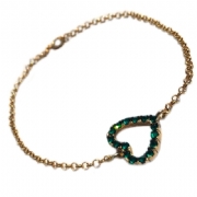 Επιχρυσωμένο ασημένιο 925 βραχιόλι με καρδούλα και πράσινα στρας