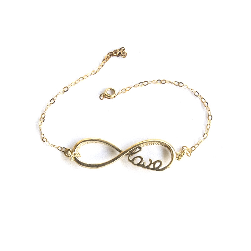Κίτρινο επιχρυσωμένο ασημένιο 925 βραχιόλι με σχέδιο άπειρο και love